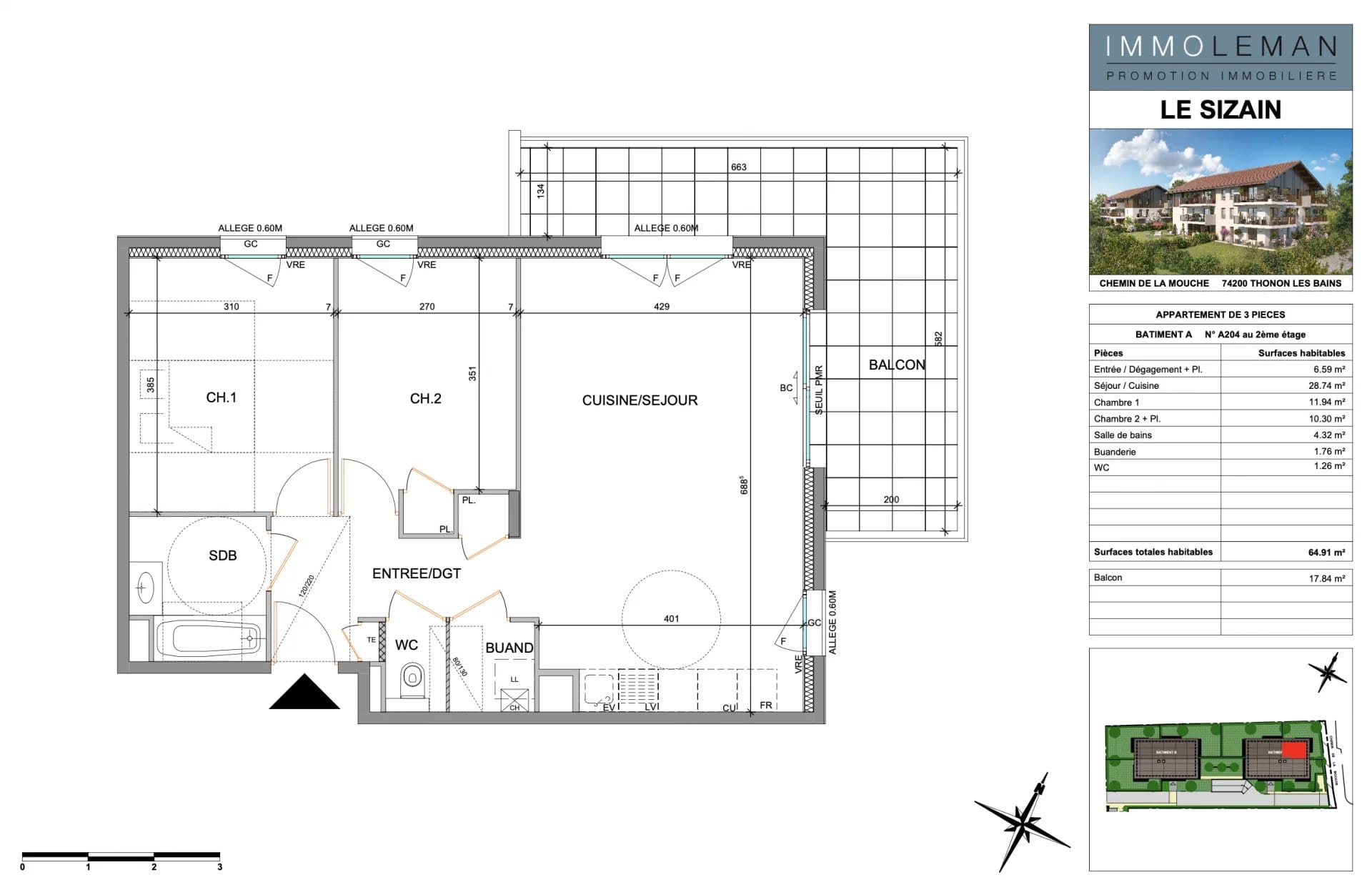 Les Copains de l’Immo vous présentent ce T3 de 64,91m2 au dernier étage.